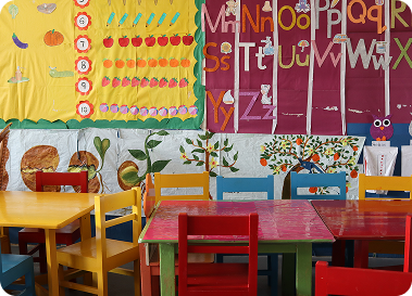 Bright, engaging learning environments with age-appropriate furniture and resources