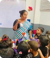 Our Play Group and Kindergarten curriculum follows a play-based approach incorporating elements of AMI techniques and thematic learning, developing foundational skills in a nurturing environment.